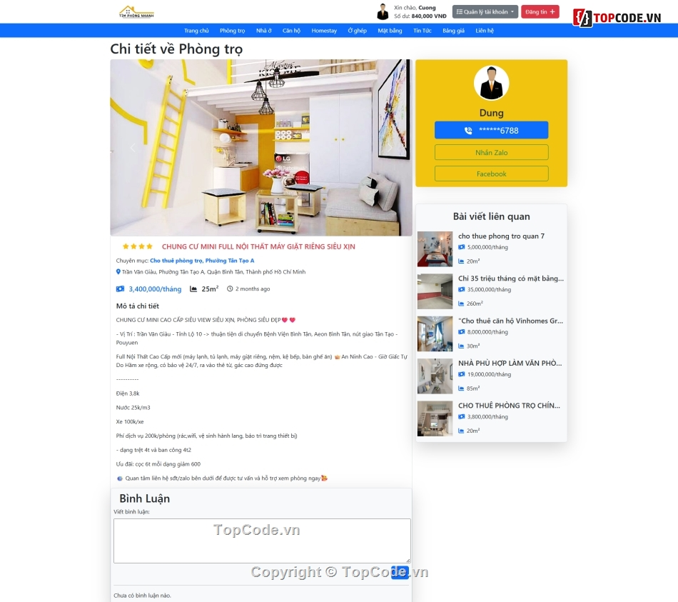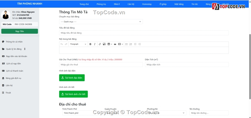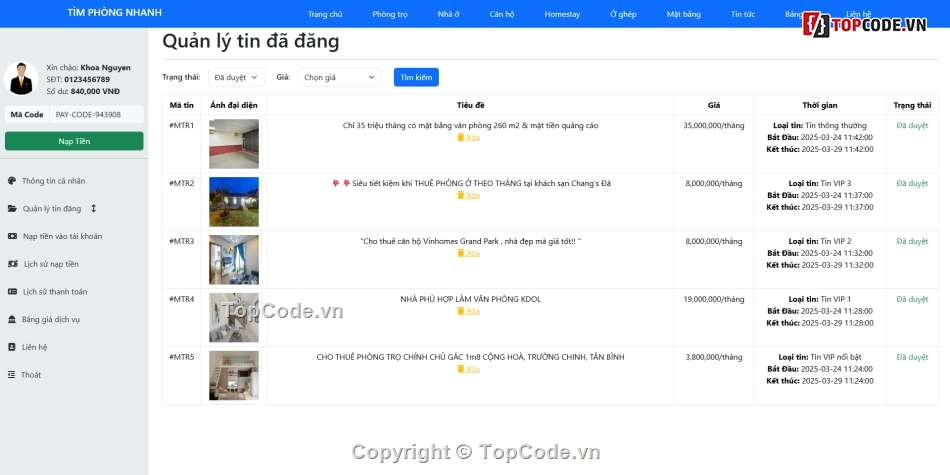 [PE2025195] Code website tìm phòng trọ quản lý nhà trọ, website nhà trọ phòng trọ -50%